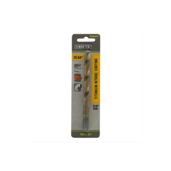 Master Mechanic, 2564 x 518, High Speed Steel, Titanium Coated Drill Bit, 135 Split Point, Jobber Length, 38 Shank, 135 Split Point Design With 4 Cutting Edges Eliminates Walking Permits Quick Accurate Starting, Added Lubricity Of TitaniumNitride Surface Finish Enhances Chip Flow, Drilling Efficiency Increases Drill Life, Recommended For Heavy Duty Drilling In Wood, Plastic, Wallboard, Plywood Soft Metals For Moderate Use In Heat Treated Or Ferrous Metals, Carded