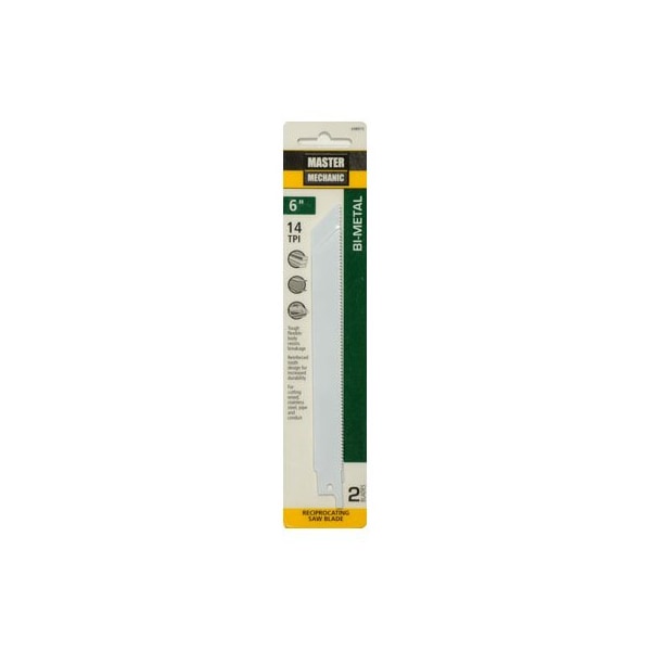 Master Mechanic, 2 Pack, 6 x 14 TPI, BiMetal Reciprocating Saw Blade, Cobalt Content Matrix II Cutting Edge Greatly Reduces Heat Wear Resistance, Designed To Cut Stainless Steel, Wood, Pipe Conduit, Clamshell Package