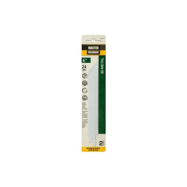Master Mechanic, 2 Pack, 6 x 24 TPI, BiMetal, Reciprocating Saw Blade, 12 Shank, Metal Straight, Shatterproof, BiMetal Construction For Flexibility, Cobalt Content Matrix II Cutting Edge Reduces Heat Wear Resistance, Designed To Cut Stainless Steel, Wood, Pipe Conduit, Clamshell Package
