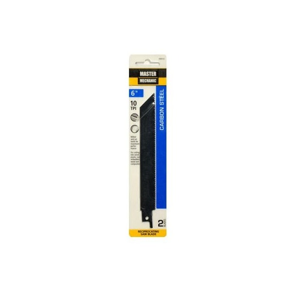Master Mechanic, 2 Pack, 6 x 10 TPI, Carbon, Reciprocating Saw Blade, 12 Shank, For Cutting Nail Embedded, Hard Or Soft Wood, Plastic, Composite Material Plastic, Carded