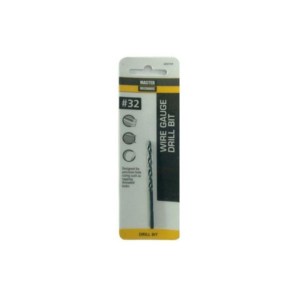 Master Mechanic, 32, 234, Black Oxide, Wire Gauge Number Drill Bit, Jobber Length, Straight Shank, 135 Split Point Eliminates Walking Provides Quick Starting, Surface Treated With Black Oxide Finish For Abrasion Resistance Improved Chip Flow, Designed For Precision Hole Sizing Such As Tapping Threaded Holes, Wire Gauge Diameters Fall Between Fractional Sizes For Most Precise Hole Sizes, Taps Through Sizes 1428 Require The Use Of Wire Gauge Bits, Carded