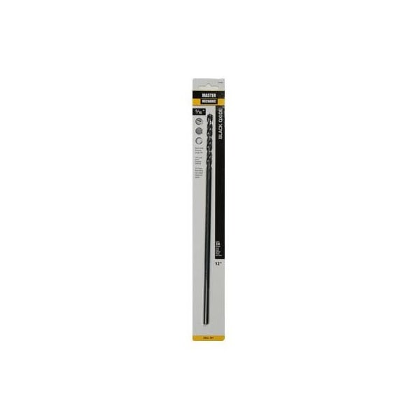 Master Mechanic, 516 x 12, Extra Length, High Speed Steel, Black Oxide Drill Bit, 135 Point Angle With 4 Cutting Edges Which Eliminate Walking Provide Fast Penetration, Black Oxide Tempering Treatment Reduces Frictional Resistance Improves Chip Flow, Recommended For Wood, Plastic, Wallboard, Plywood Soft Metals, Aluminum, Brass, Bronze, For Occasional Use In Stainless Steel Other Hard Metals, Carded