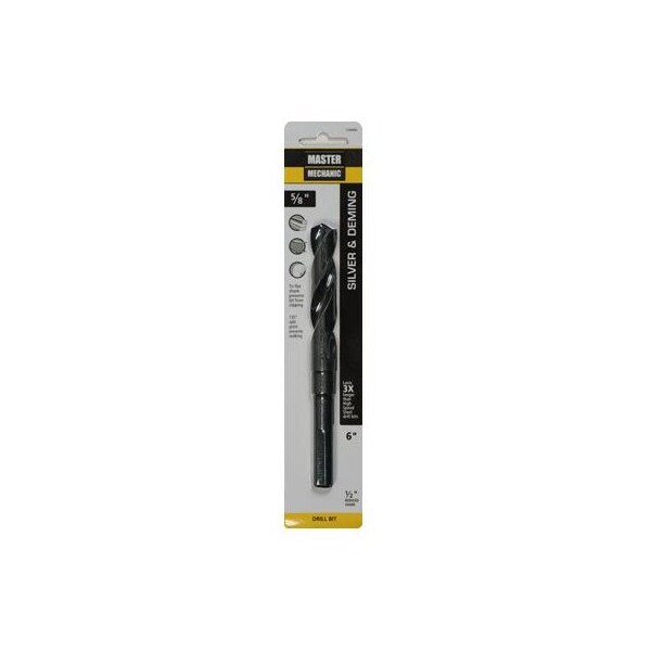 Master Mechanic, 58 x 6, Silver Deming, High Speed Steel, Black Oxide Drill Bit, Jobber Length, 12 Reduced Shank, 318 Flute Length, Black Oxide Surface Finish Improves Chip Flow Increases Abrasion Resistance, Recommended For Drilling Wood, Plastic Soft Metals, Used In Machine Shops Using Screw Machines Or Where The Maximum Chuck Capacity Is 12, Carded