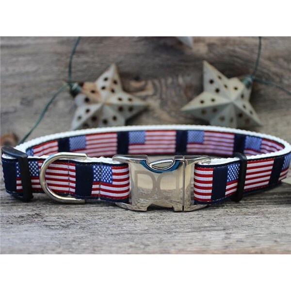 Wag your flag! Old Glory is richly embroidered and set against a background of deep navy blue on this classic collar collection.