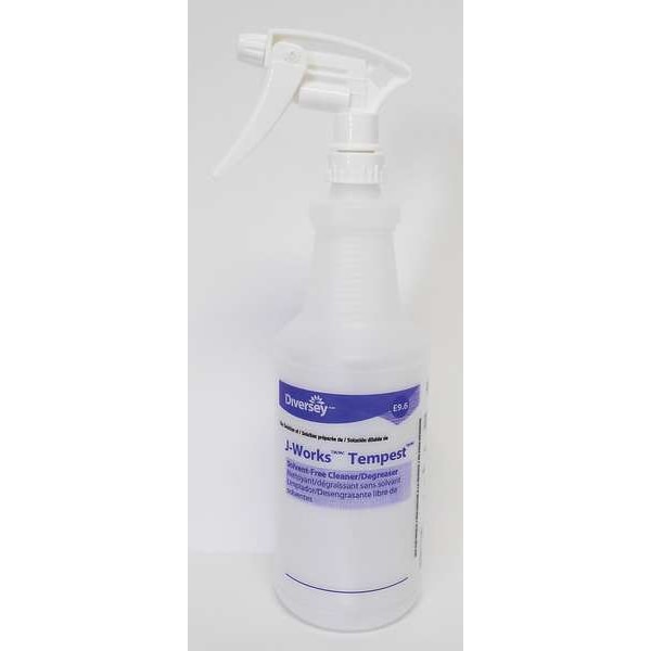 Trigger Spray Bottle, Dispensing Type Mist, Stream, 32 oz, White, Sprayer Color White, Bottle Material HDPE, Sprayer Material Polyethylene, Dip Tube Length 9 1/4 in, Seal Material Polypropylene, Imprinting E9.6 J-Works Tempest Solvent-Free Cleaner/Degreaser, Graduation Markings No, Overall Height 12 1/2 in, Closure Size 28/400, Features Adjustable Nozzle, Closure Diamenter 28 mm, Closure Thread Style 400, Package Quantity 12