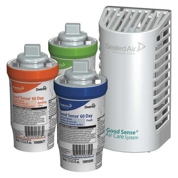 Air Freshener, Liquid, Fragrance Fresh, Cartridge, 1.7 oz, Product Series Good Sense(R), Refill Life 60 day, NSF Rating Not Rated, Coverage 6,000 cu ft, Clear, VOC Content 29 Percent, Net Weight 1.7 oz, Package Quantity 6