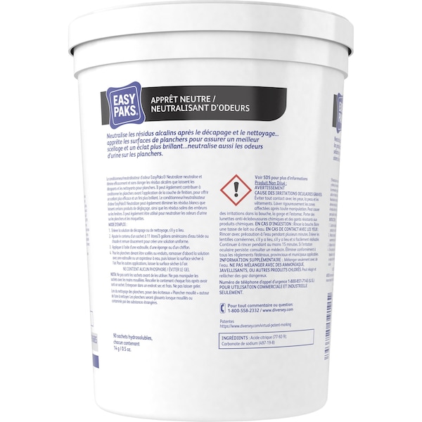 Concentrated powdered compound quickly dissolves in water to produce a cleaning dilution that can be varied to meet your needs. It neutralizes alkaline residue left behind on floors from ice melt, floor strippers and cleaners. Use to help eliminate dulling, discoloring and hazing for a longer-lasting, brighter finish. It conditions floors for better sealing. Easy Paks Neutralizer Conditioner also works as an odor neutralizer on restroom floors and showers.