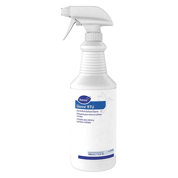 Glass Cleaner, Ammonia Free No, Acrylic Safe Yes, Contains Vinegar No, Container Type Trigger Spray Bottle, Container Size 32 oz, Cleaner Form Liquid, Ready to Use/Concentrated Ready to Use, Fragrance Unscented, Product Label Glass and Multi-Surface Cleaner, Standards Halal, Kosher, Color Blue, Flash Point Greater Than 200 Degrees F, NSF Rating Not Rated, Plastic Safe Yes, Primary Chemical Ammonia, Sodium Lauryl Sulfate, Product Series Glance(R), Properties No Rinse Required, Plastic Safe