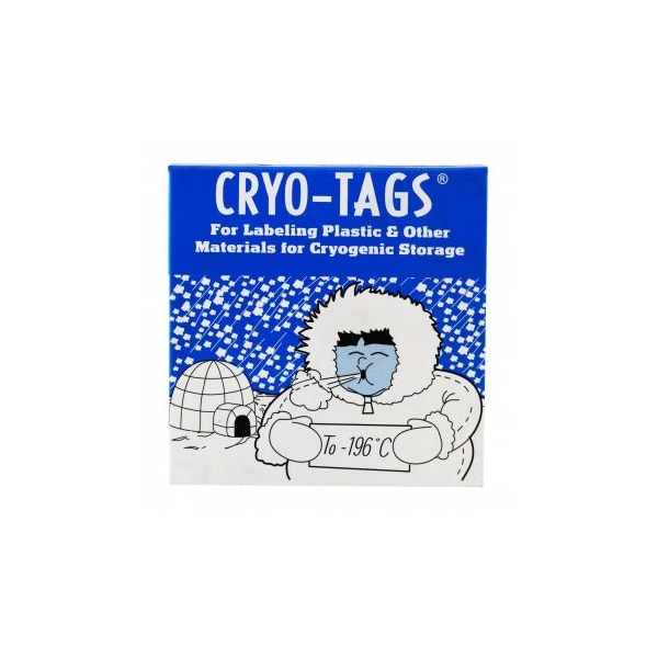 Convenient Cryo-Tags offer superior temperature and chemical resistance. Durable labels withstand cryogenic liquid nitrogen storage, boiling water baths, solvents, caustic solutions and other laboratory chemicals. Cryo-Tags fit bottles, flasks, vials, cryoboxes and more. Chemically inert poly vinyl labels adhere to all polypropylene and polyethylene surfaces without cracking, peeling or degrading and can be marked with a regular pen or marker.
