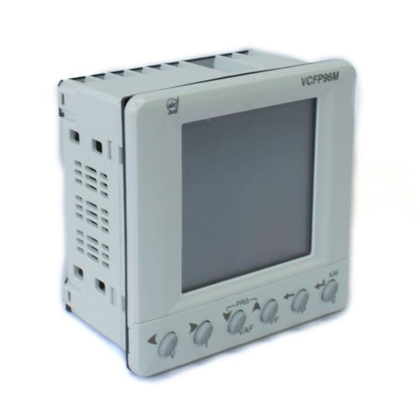The VCFP96M is a complete single phase and three phase digital metering system suitable for low, medium and high voltage control panels, gensets, load banks, building management systems and power management systems. The VCFP96M can be used on single phase, three phase three wire as well as three phase four wire balanced or unbalanced systems. The six easy to access front control keys are used for scrolling up or down through the parameters being measured and displayed such as voltage, current, power factor, power active, reactive, apparent, energy and frequency. Output specifications include pulse output and RS485 Modbus RTU communication protocol compatible with PC, PLC, RTU, data loggers and SCADA programs. The VCFP96M is available in a 96 x 96 mm panel mount housing front panel IP65 with red led display for easy viewing in a variety of conditions.
