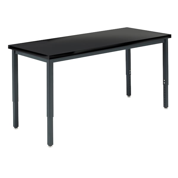 Rectangle Adjustable Table, 60" W, 62" L, 23" to 37.5" H, Phenolic Resin Top, Black