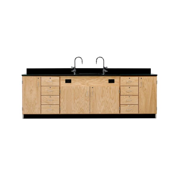 - Constructed of solid oak and oak veneers, finishing the workstation is rubber base molding and a durable chemical resistant UV finish