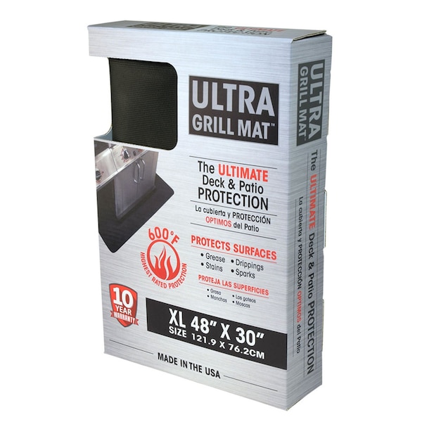 The Ultra Grill Mat is designed to protect deck, pool and patio surface areas from grease and sauces associated with both gas and charcoal grilling. The 48 x 30 inch Ultra Grill Mat is designed to protect surface areas up to 600 degree Fahrenheit providing superior surface protection when used with gas/charcoal grills, outdoor fryers and fire pits. The Ultra Grill Mat is lightweight and durable while providing the highest rated surface protection against embers, sparks, oil, grease, spills, drippings and splatters.
