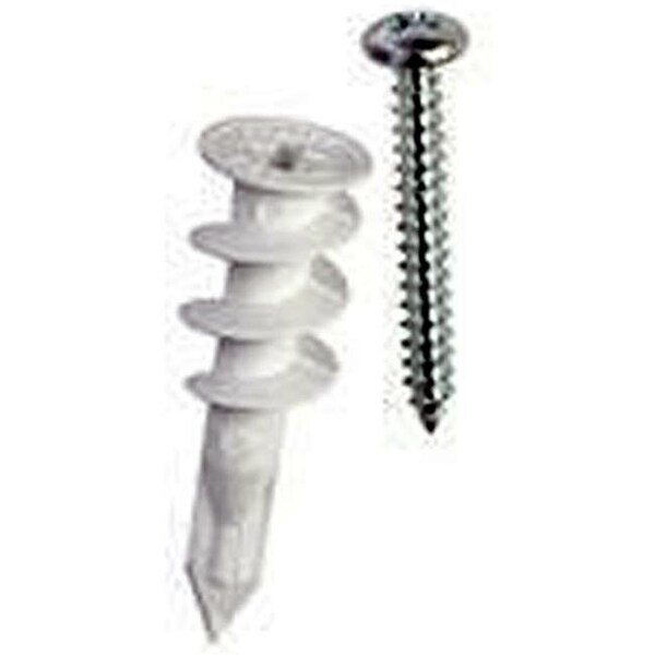 Hollow wall anchor. Plastic. Medium Duty. 1/2" x 1-5/8". Twist-N-lock plastic drywall anchors are self drilling drywall anchors for medium-duty wall applications. Holds up to 75# and can be installed with only a #2 Phillips screwdriver. No pre-drilling. Deep threads. Removable. For best results use a #8 diameter screw 1-1/4" in length. 4 Pack.