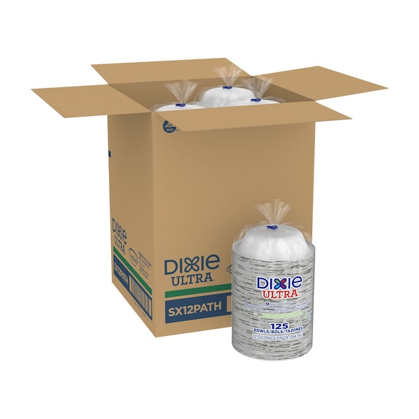 Disposable Bowl, Bio-Based Yes, BPI Certified No, Capacity 12 oz, Coating/Lining Soak-Proof Shield, Color Brown, Green, White, Compatible Manufacturer Lid Part Number Not Applicable, Compostable Not Compostable, Depth 1 1/2 in, Diameter 6 in, Freezer Safe No, FSC Certified No, Material Paper, Microwave Safe Yes, Pattern Pathways, Recyclable Yes, SFI Certified Yes, Shape Round, Standards Not Applicable, USDA Certified Bio-based Products Yes, Wrapped or Unwrapped Unwrapped, Weight Heavy-Weight