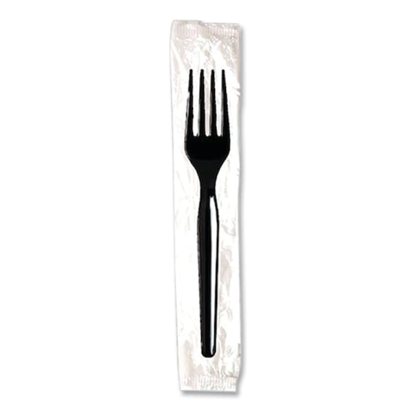 Individually Wrapped Mediumweight Polystyrene Cutlery, Fork, Black, PK1000, 1000PK