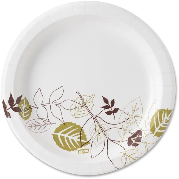 Everyday paper plates feature a multilayer design and Soak Proof Shield that provides strength and rigidity for all kinds of foods. The nature-based, Pathways design offers a crisp, white background for a clean, pure look and a falling leaf pattern in natural, contemporary colors. This upscale yet down-to-earth nature theme on the 8-1/2" plate complements food. Ideal for everyday food, these medium-weight plates are microwavable and cut-resistant. Compact, low-stacking shape saves storage space vs. molded fiber and foam plates. They are also recyclable and compostable.
