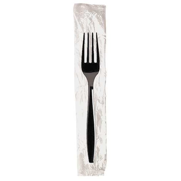 Wrapped Disposable Fork, Black, Heavy Weight, PK1000