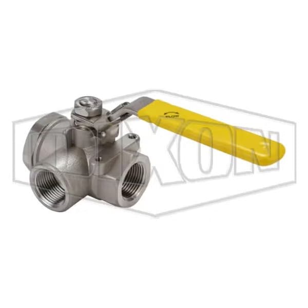 3-Way Diverting Ball Valve, 3/4 in Nominal, FNPT End Style, Standard Port, RPTFE Seat/Stuffing Box R