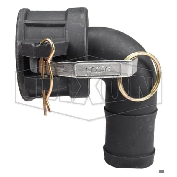 90Deg Cam and Groove Elbow, 1-1/2 in, Coupler x Hose Shank, Polypropylene, Domestic