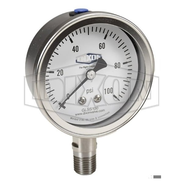 Dixon GSS100 Dry Gauge, 0 to 100 psi, 1/4 in NPT Connection, 2-1/2 in Dial, +/- 2-1-2 %
