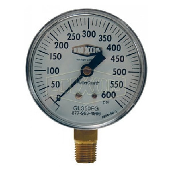 Dixon FlutterGuard GL320FG Dry Gauge, 0 to 30 psi, 1/4 in Connection, 2-1/2 in Dial, +/- 3-2-3 %
