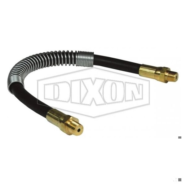 Grease Whip Hose Assembly with Strain Relief Spring, 8 in L, 3000 psi Operating, 1/8-27 MNPT, Brass