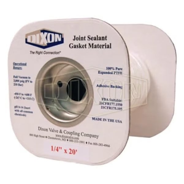 Joint Sealant Gasket, 25 ft L x 3/8 in W, 3000 psi, PTFE, Domestic