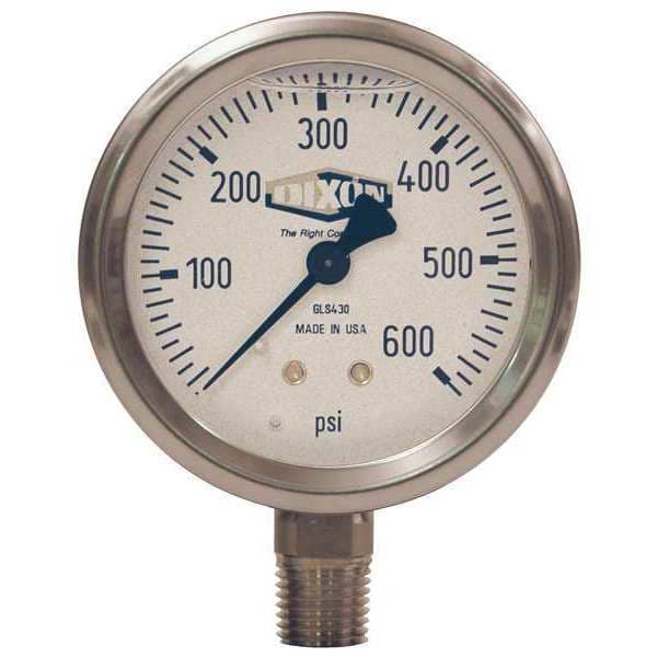 Liquid Fill SS Gauge Lower Mnt, 0-160psi, 1/4 in NPT Lower Location, Stainless Steel Case Material