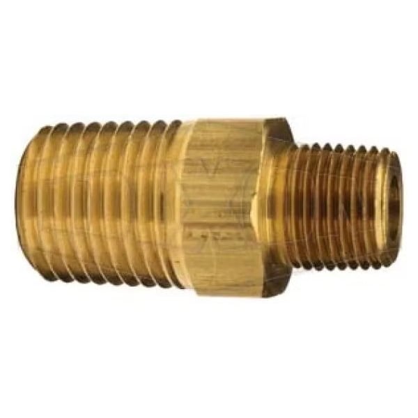 Reducing Hex Nipple, 3/8 x 1/8 in x 1.22 in L, Brass, MNPT