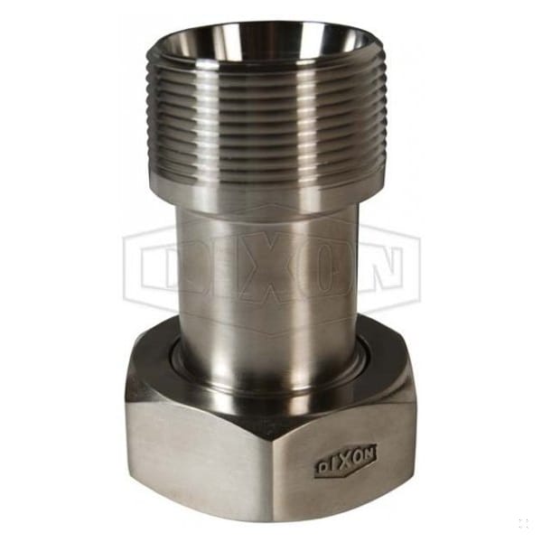 Dixon 14-19-G150 Sanitary Adapter, 1-1/2 in Nominal, Plain Bevel Seat x MNPT with Hex Nut End Style, 304 Stainless Steel
