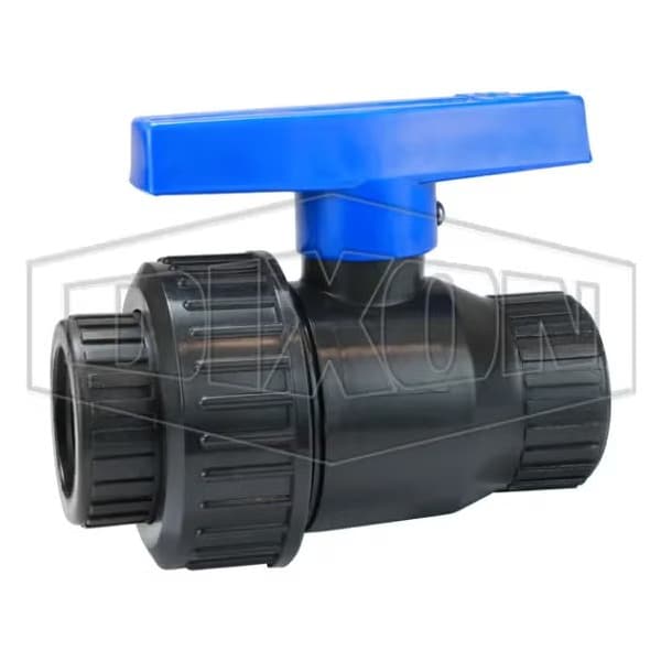 Single Union Ball Valve, 1 in Nominal, FNPT End Style, Polypropylene Body, Full Port, EPDM Softgoods