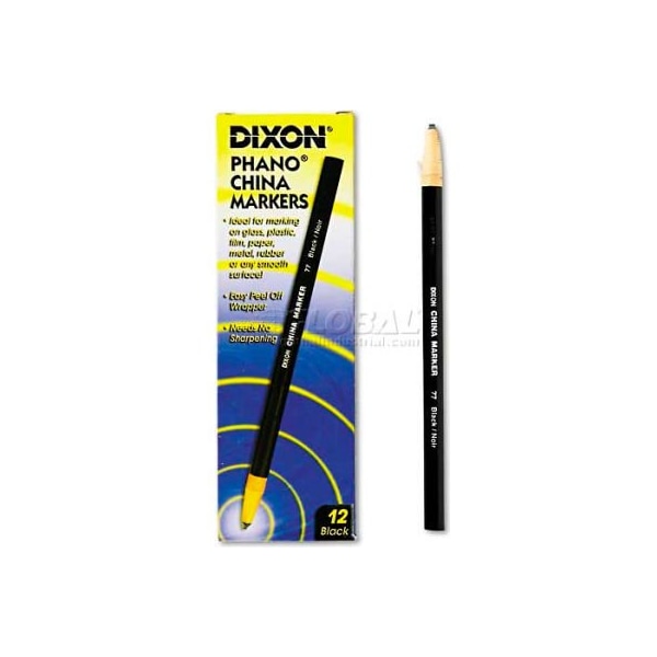 Dixon 77 china marker, black, dozen ideal for marking on glass, plastic, film, and most surfaces. Easily wipes away clean from smooth surfaces. Paper-wrapped with tear string sharpening. Color(s): black. larger quantity quotes available. Please call 1-888-978-7759. this product arrives to most customers in 2-3 business days.