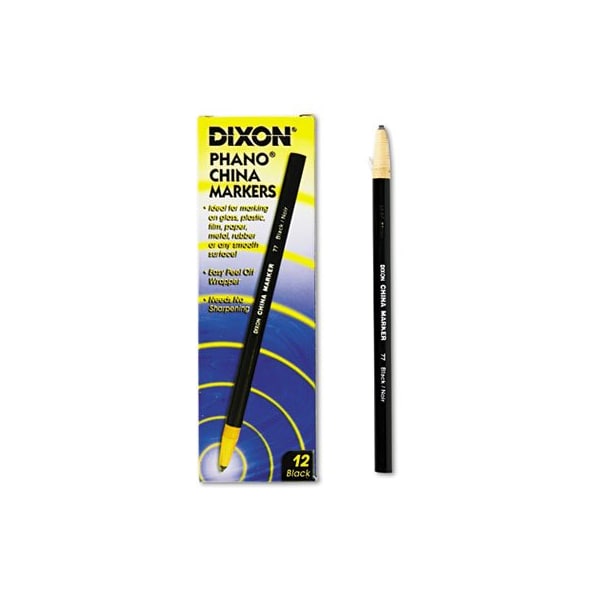 Ideal for marking on glass, plastic, film and most surfaces. Easily wipes away clean from smooth surfaces. Paper-wrapped with tear string sharpening. Colors: Black; Color Family: Black; Size Group: Standard.