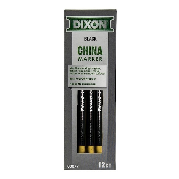 Dixon China markers make beautiful bold strokes on almost any porous or nonporous surface including glass, plastic, film, paper, metal and rubber Marks wipe away clean from porous surfaces No need for a sharpener Pencils are paper wrapped with a tear string for easy sharpening Available in a selection of bright, brilliant colors