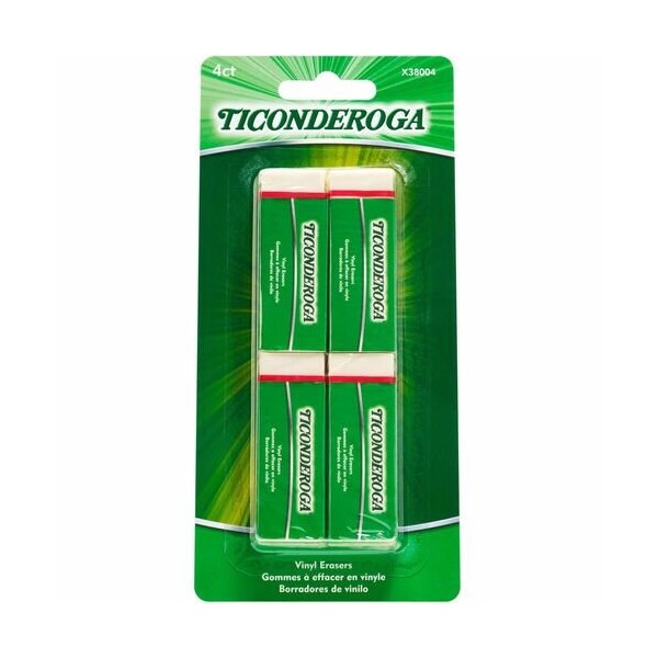 Ticonderoga White Erasers remove pencil marks cleanly without smudges, residue or tearing paper. Each premium eraser is wrapped in a sliding sleeve for better grip and control. Block shape promotes precise mark removal. Latex-free eraser is nontoxic.