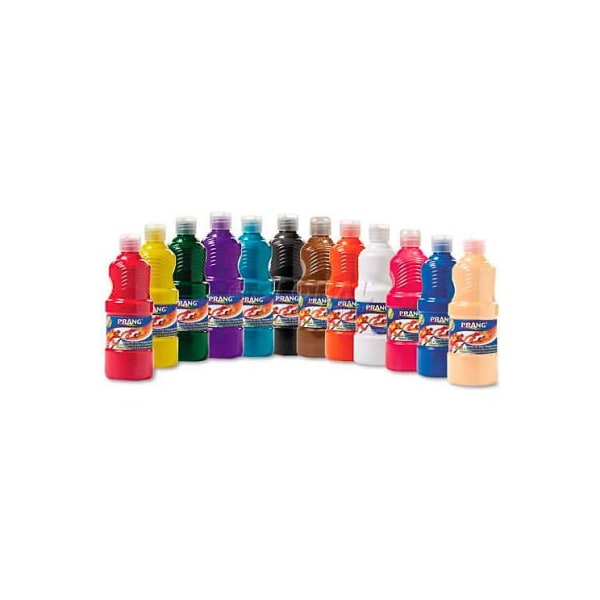Prang 21696 ready-to-use tempera paint, 12 assorted colors, 16 oz, 12/pack creamy, smooth texture and bright, non-setting colors that blend easily. Assortment includes one of each color. chemical compound: tempera capacity (volume): 16 oz. finish: matte acmi ap non-toxic certified colors included: black, blue, brown,green, magenta, orange, peach, red, turquoise blue, violet, white, yellow. this product arrives to most customers in 2-3 business days.