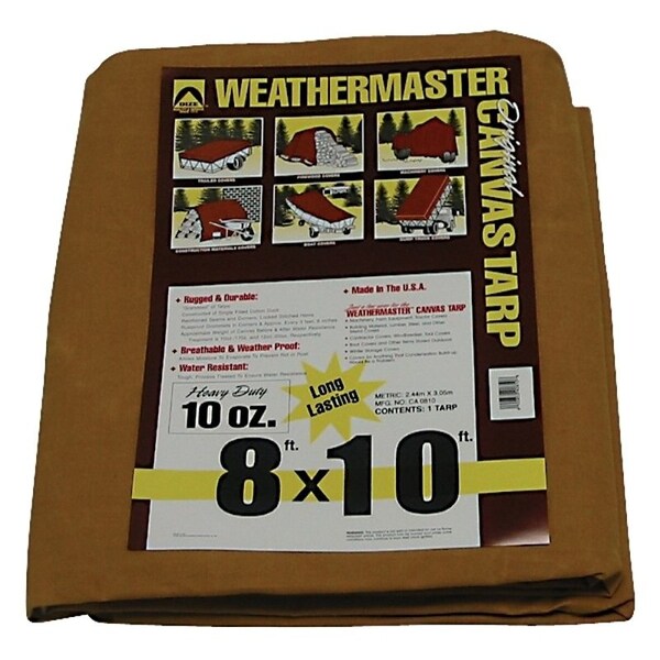 Weathermaster Tarpaulin, 10 ft L, 8 ft W, Canvas, Tan