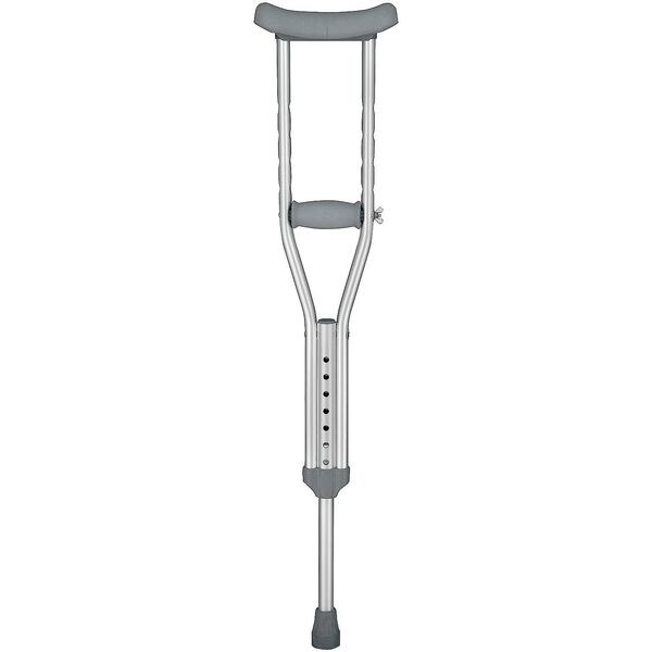 Crutches, Patient Type Adult, Patient Height Range 62 in to 70 in, Height 44 to 52 in, Weight Capacity 250 lb, Color Silver, Construction Anodized Aluminum, Latex Free, Includes Grip, Pad, Tip, 1 Pair