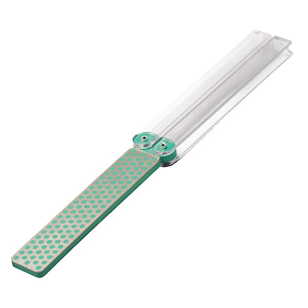 Single Grit Folding Sharpener, Overall Length 4 5/16 in, Overall Width 7/8 in, Overall Height 3/16 in, Abrasive Material Diamond, Grade Extra Fine, Grit 45, Compatible Lubrication Water, Product Type Single Sided Sharpening Stone, Color Green