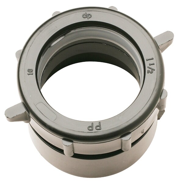 1-1/2 compression x 1-1/2 Schedule 40 solvent weld. Black.