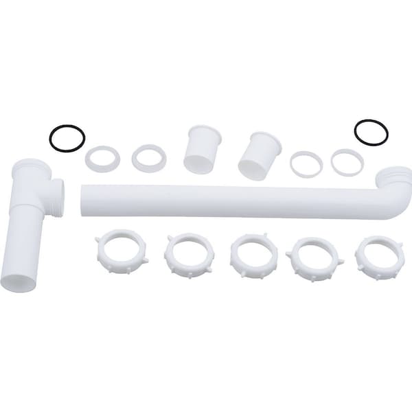The Do it Best 1-1/2 In. x 16 In. White Polypropylene End Outlet Continuous Waste allows you to connect double bowl sink strainers to the drain connection. With compatibility for a Slip Joint or Direct Connection the End Outlet includes a Baffle Tee and all necessary nuts and washers for a strong connection that avoids leaks. Measuring 16 In. in length with an 1-1/2 In. inlet the End Outlet is constructed of durable white polypropylene that is made to last.