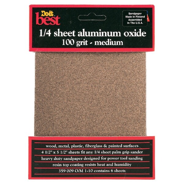 Fits 1/4 sheet power sanders. For use on wood metal plastic fiberglass and painted surfaces. Features resin coating that outlasts glue bond sandpaper. Heavy-duty F-weight backing. 6 sheets per package.