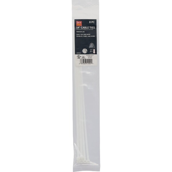 14''x0.189'' Natural Color Molded Nylon Cable Tie, 8PK