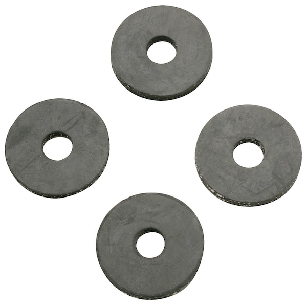 Tank bolt cloth inserted washers. 1-3/32 O.D. x 15/32 I.D. x 1/8 thick. Flat rubber. Black. 4-piece.