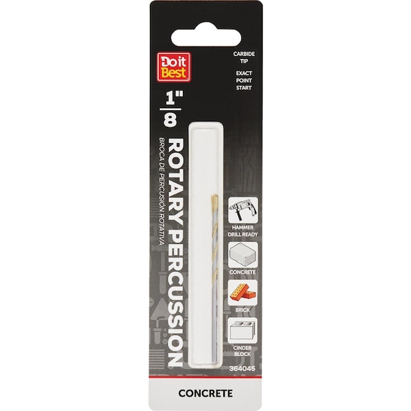 The Do it Best Rotary Percussion Masonry Drill Bit is built for tough applications designed for use in both rotary and hammer drills. With an exact point start this bit provides precise efficient drilling in materials like brick block and concrete. The durable carbide tip ensures long-lasting performance making it an ideal choice for demanding masonry tasks.