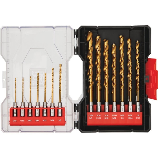 The Do it Best 21-Piece Impact-Ready Titanium Hex Shank Drill Bit Set offers up to 3x longer life with a titanium coating that reduces heat build-up and keeps the bits sharper. Designed with a 135-degree split point tip for a precision start with no walking and a stronger core to resist breaking this set ensures fast accurate drilling in a variety of materials. 1/4 shank for easy use with drills and impact drivers. Includes (21) titanium hex shank drill bits: (2) 1/16 5/64 (2) 3/32 7/64 (2) 1/8 9/64 5/32 11/64 (2) 3/16 13/64 7/32 15/64 1/4 9/32 5/16 11/32 and 3/8.