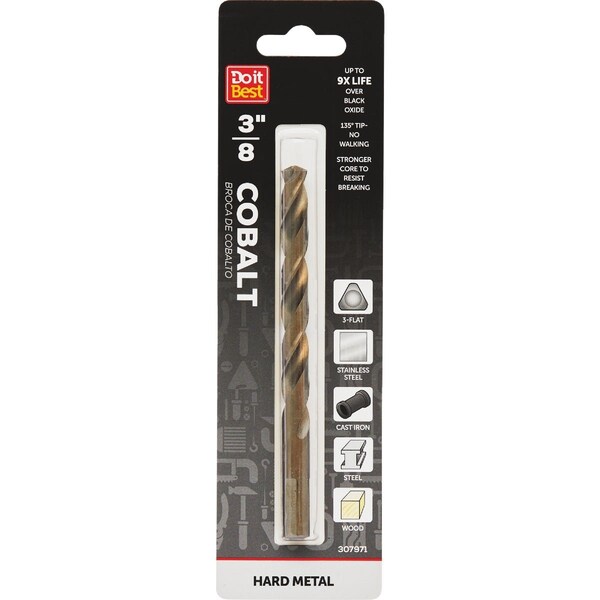 The Do it Best Cobalt Drill Bit offers industrial-grade quality for drilling in hard abrasive materials like stainless steel and titanium. With a 135-degree split point this bit penetrates quickly and prevents walking for precise starts. Built with a stronger core to resist breaking it delivers up to 9 times the lifespan of standard black oxide bits and can also be used in wood and PVC.