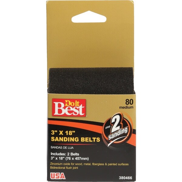 3''x18'' 80 Grit Hvy Dty Premium Sanding Belt, 2PK