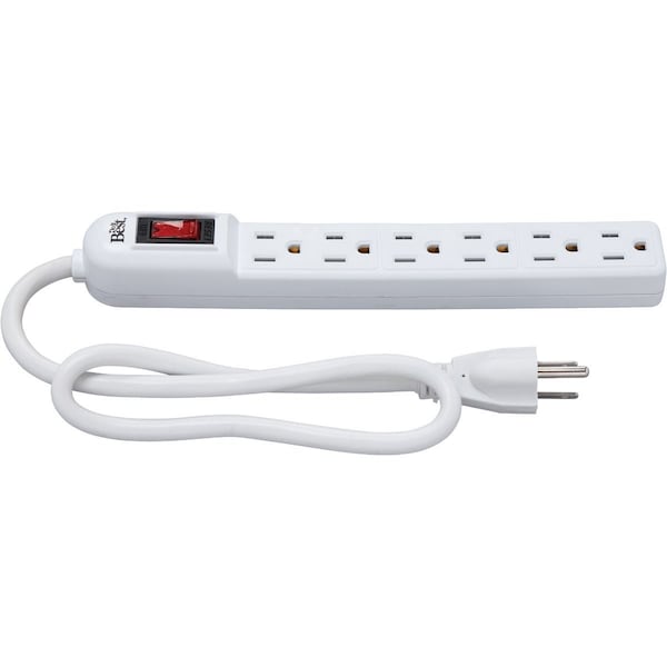6-Outlet White Power Strip with 2 Ft. Cord
